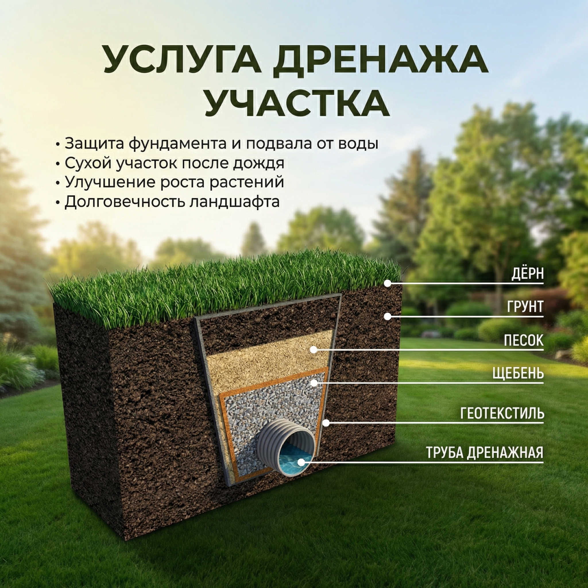 ЧТО ВХОДИТ В УСЛУГУ ДРЕНАЖА УЧАСТКА: